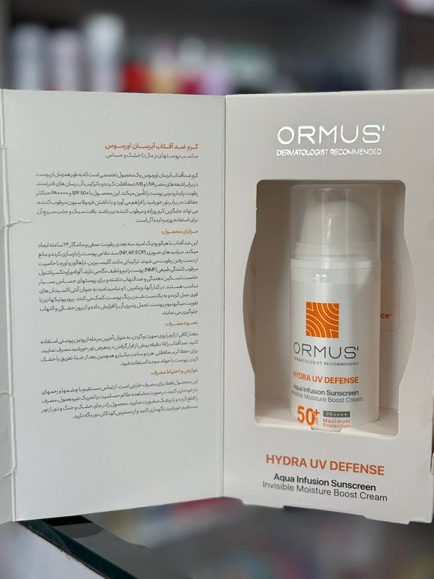 ضد آفتاب آبرسان بی رنگ اورموس مناسب پوست های خشک تا نرمال | spf +50 | حجم 50 mil