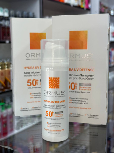 ضد آفتاب آبرسان بی رنگ اورموس مناسب پوست های خشک تا نرمال | spf +50 | حجم 50 mil